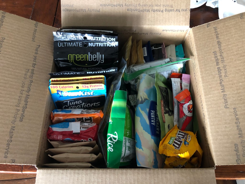 This is one of my resupply boxes for 4-5 days on the trail, which can fit into a large flat rate USPS box. A typical daily diet would be as follows: