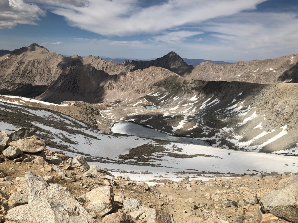 I skipped Whitney, as I’ve summited it in the past. Forester Pass was challenging enough with a full pack. The south side was fairly snow free, with large patches of snow on the north side, but manageable with microspikes.