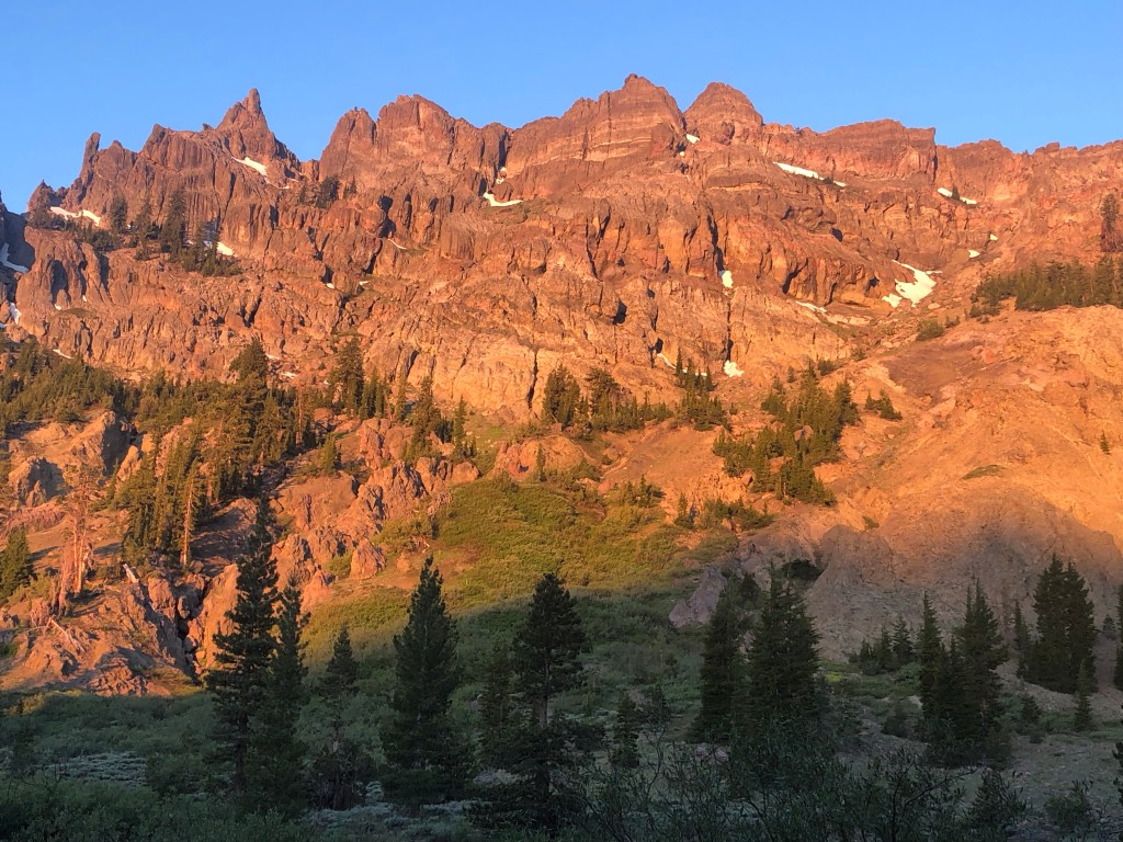 I’ve officially finished the Sierras after a seven day stretch from Mammoth to Kennedy Meadows North, followed by another four days to South Lake Tahoe. Not easy, but could have much more difficult during a higher snow year. Evolution Creek (the most notorious river crossing) was below knee level, and I haven’t used my microspikes since Forester Pass.