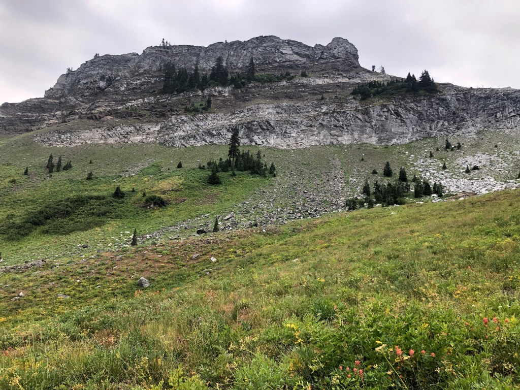 Struggling up the log strewn, overgrown slope mid afternoon we ran three mountain bikers coming down, who were either lost or insane. I assume they survived the ride down. On a side note, the geology of the area is really cool, with chunks of white marble around the trail.